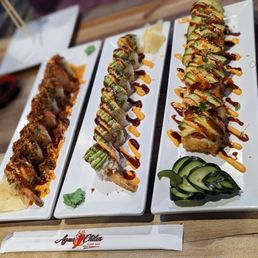 This was my first time visiting this place. There were some absolutely amazing stand outs and some things I would not order again. I would skip the salmon sashimi, pork bao and the churro dessert. They needed a lot of improvement. The sauces are utterly amazing. The shrimp appetizer was to die for and I could eat that every day of my life. The titanic roll was great as well. Stick to the speciality rolls and you’re good to go. The service was amazing.